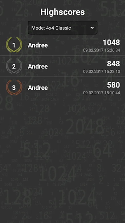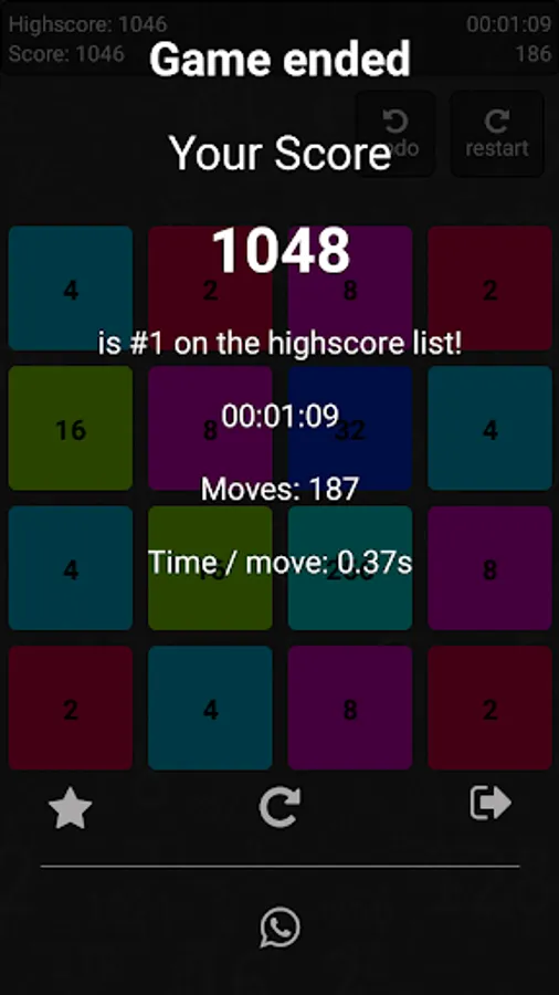 This is the most diverse version of the 2048 game. Beside several field sizes you can also choose a tile color theme. The highscore list forces you to continue. Are you better than your friends? Share your result via WhatsApp and prove it!