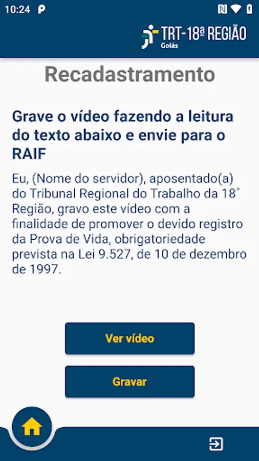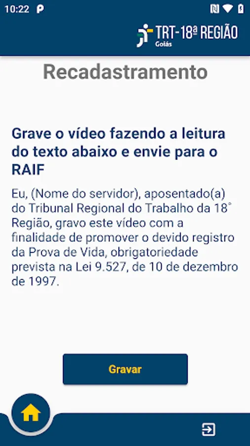 Application developed by the Department of People Management of TRT18 in partnership with the Department of Information and Communication Technology to carry out Proof of Life for inactive servers.