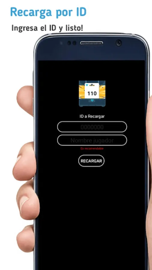 In the app you need to have gold to obtain diamonds, then you must enter the id of the user to recharge, in addition to his name in the game to ensure an instant recharge.