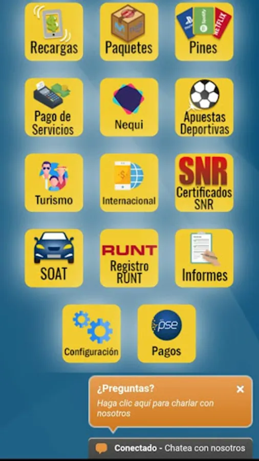 Now you don't need to leave home to recharge your cell phone, data packages, pay for your services, buy pins, buy soat, and much more