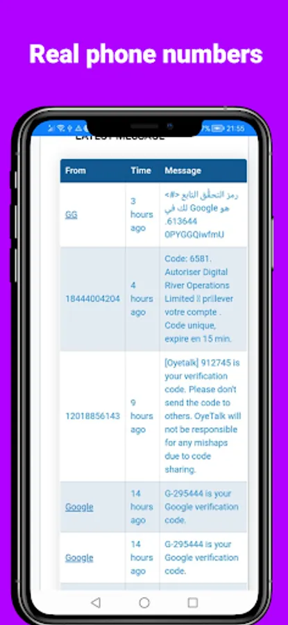 No need to disclose your real phone number when accessing online services! With our service, you can easily access a wide range of ever-changing international numbers to stay safe online. Keep your data secure and get OTP verification codes from various sources with maximum security for all of your digital activities.