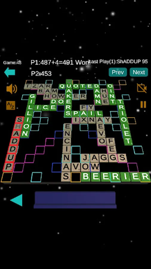 All words played in the app are valid as of 2023's tournaments, without any phony play.