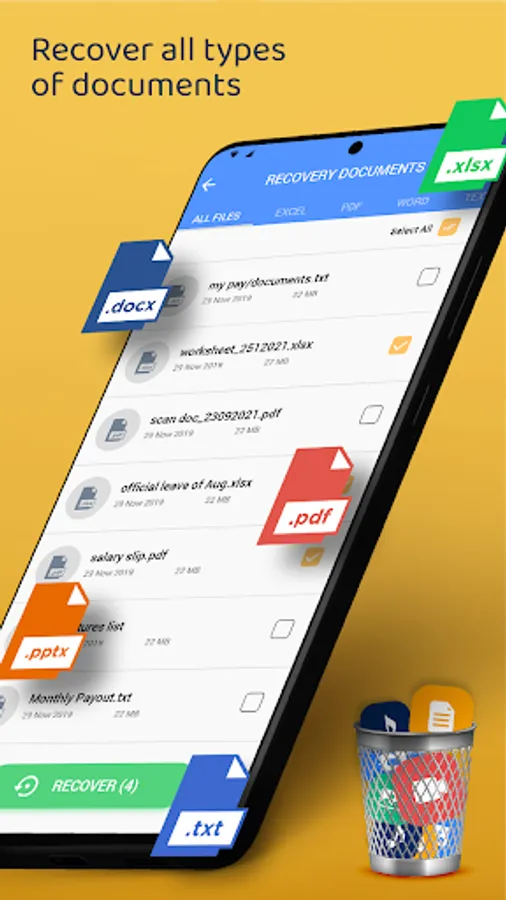 1. Document Recovery or Deleted Files Recovery App :- Document Recovery or Deleted Files Recovery App lets you restore all your documents that you have deleted.