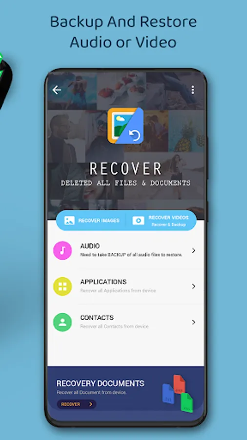 Recovery app for deleted files & documents gives you the option to recover and restore all your lost files. Deleted File Recovery App is a super File Recovery Tool that easily searches and recovers deleted files (deleted documents, photos & videos) without root.