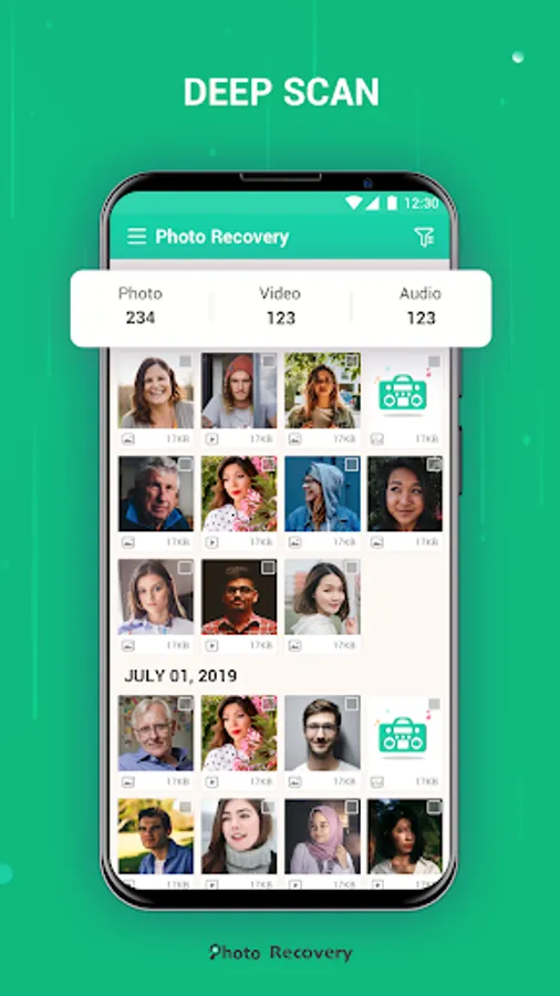Deep Scan-Click to scan all your lost or deleted files safely without making any changes to your data. You can also easily preview images, videos and audio and enjoy lost files again. And support multiple selection, you can select multiple files at once, and quickly restore lost or deleted pictures, videos and audio to your phone.