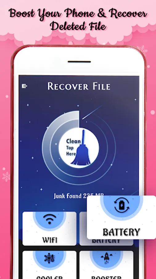 Scan and recover deleted files,photos,videos,music & Contacts on single touch .