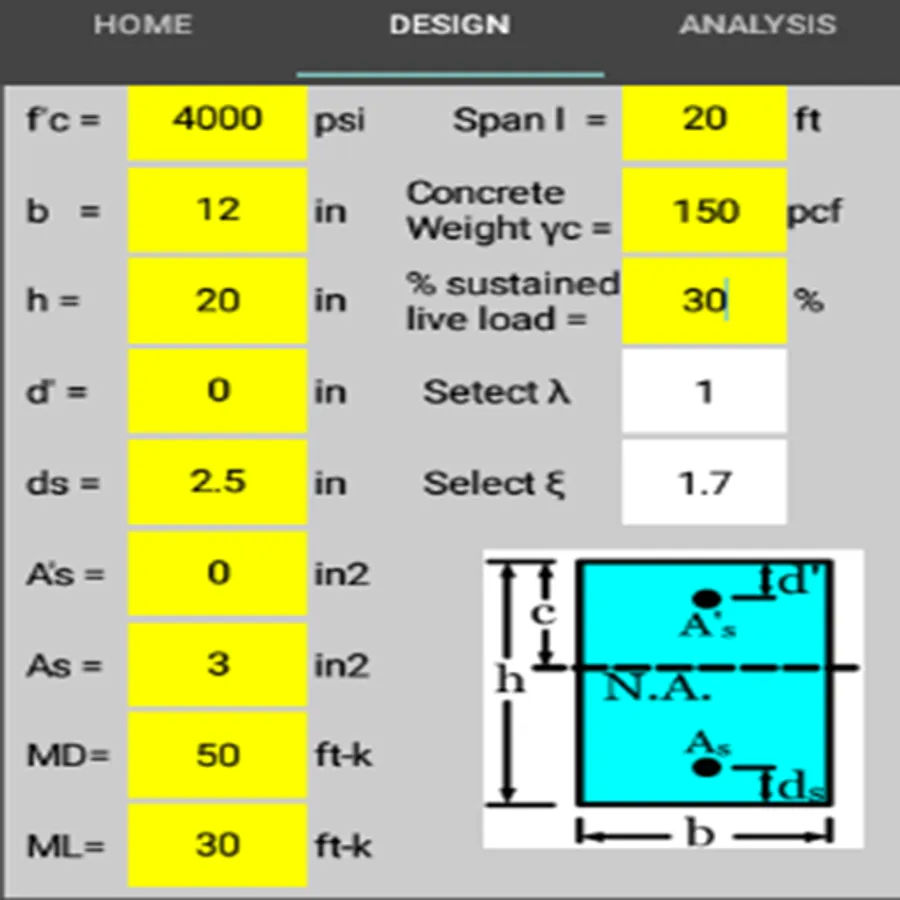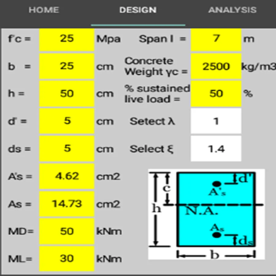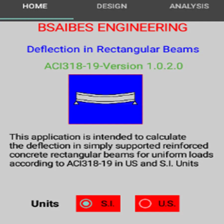 This application is intended to calculate the deflection in simply supported reinforced concrete rectangular beams for uniform loads
