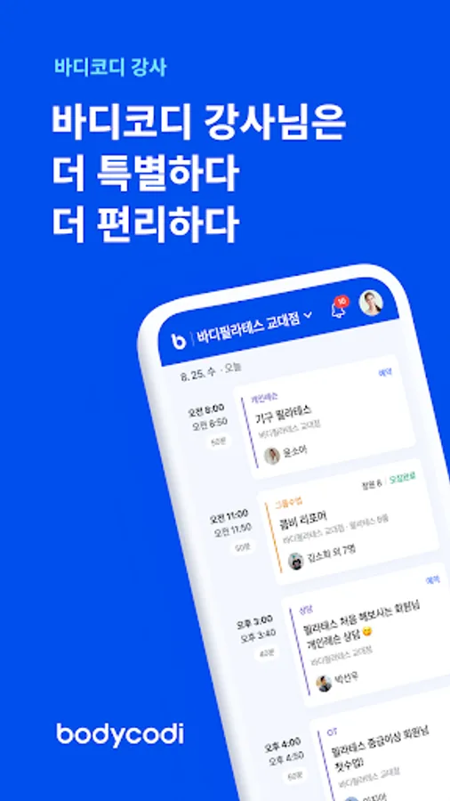 The NO.1 fitness operating system, Body Cody, is the only smart reservation solution in Korea developed by Red Blue Co., Ltd., and provides a smart all-in-one service up to automatic settlement. and increase revenue.