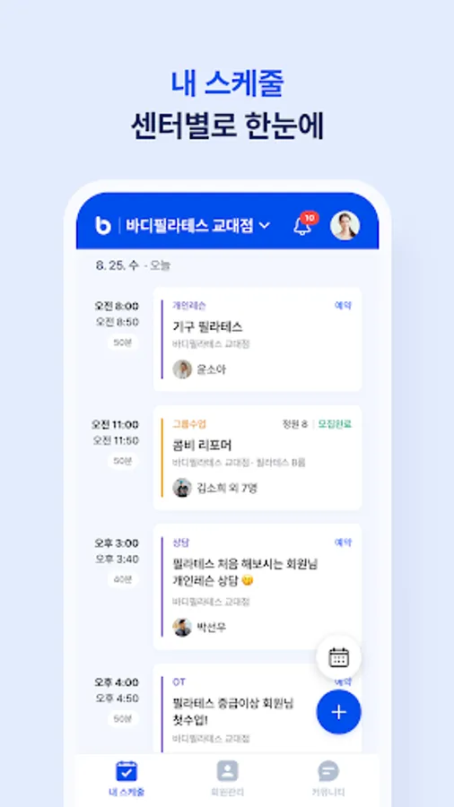 - You can check 1:1 individual classes, group classes, and even my schedule at a glance for each center.