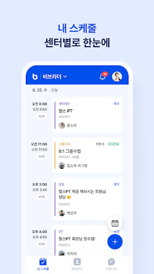 - You can check 1:1 individual classes, group classes, and even my schedule at a glance for each center.