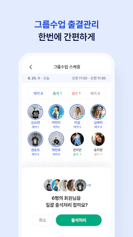 - Through the batch attendance processing function, you can efficiently manage attendance for group classes with a large number of people.