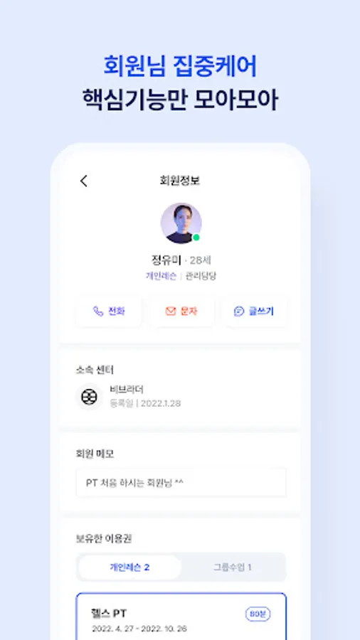 - You can check 1:1 private class members, management members in charge, and members currently entering the center in real time.