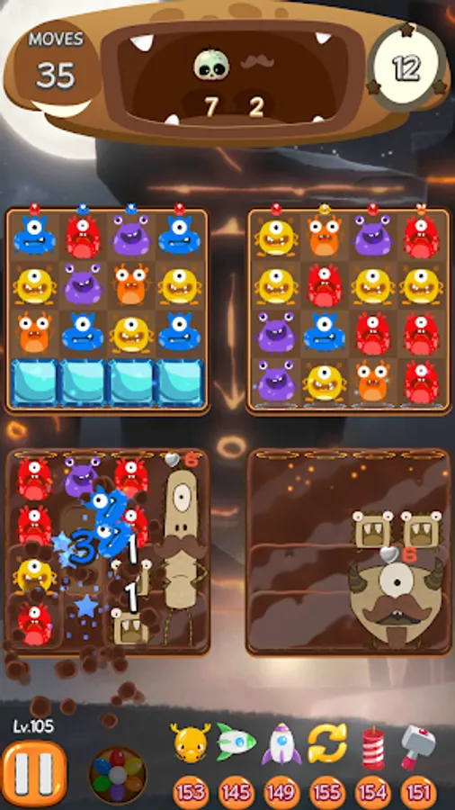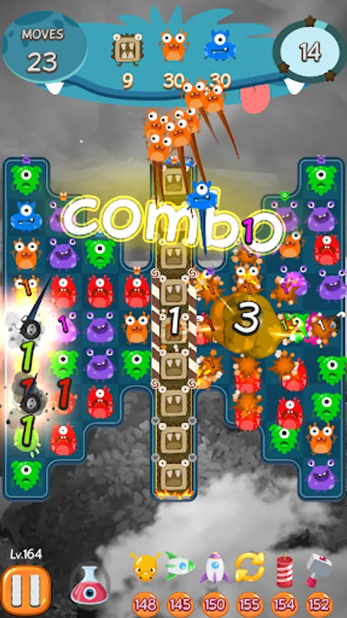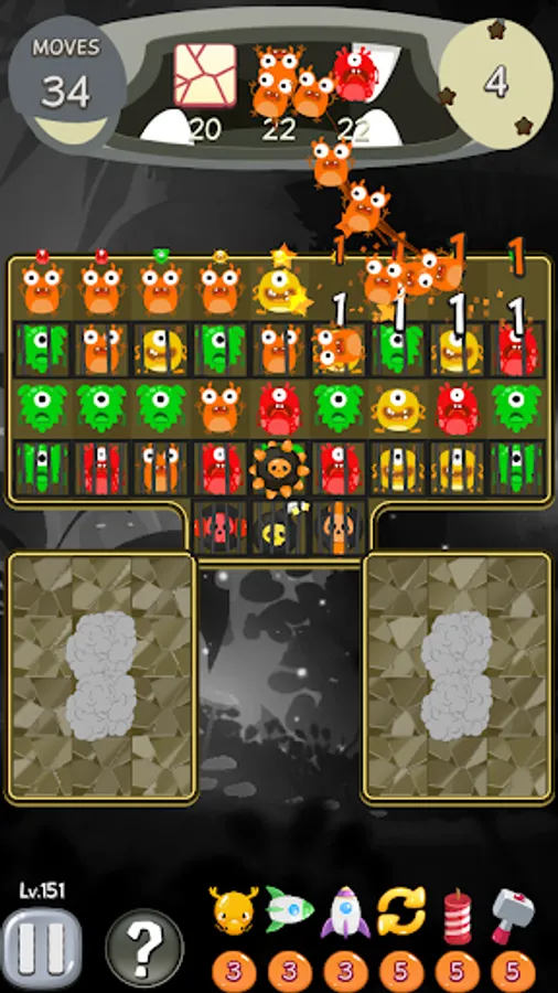 Matching four or more of these same colors will reveal enhancement items such as magic lightning, pretty ladybugs, and bombs.