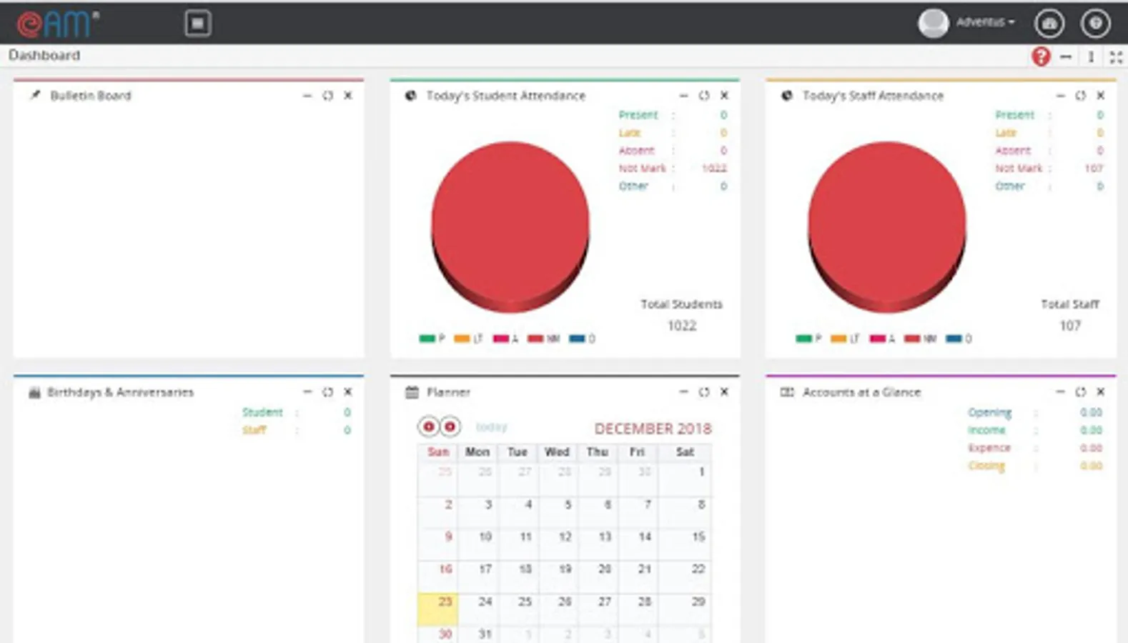 eAM is an Electronic Administration & Management tool for educational institutions. eAM is an initiative of today and tomorrow’s innovation by Adventus Technocrats Pvt. Ltd. with prime focus to deliver education through innovation, automation and technology. Adventus has developed a state of the art technologically smart environment along with complete security and satisfaction for all the Schools, Colleges, Universities and Institutions.
