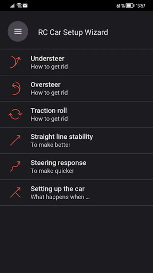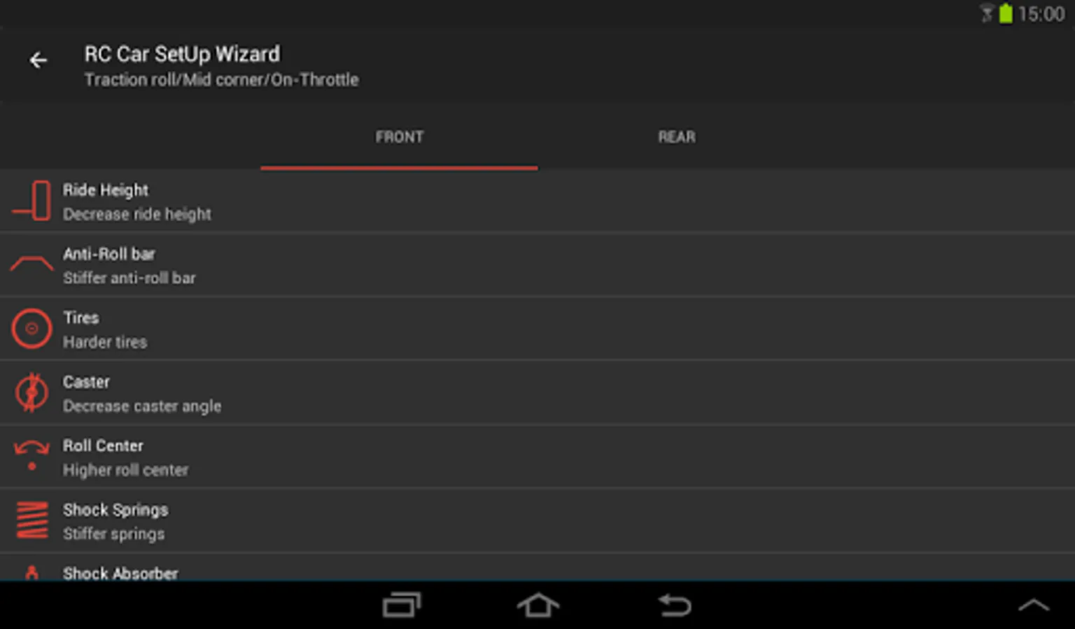 RC Car Setup Wizard will help you to improve the handling of your RC car and make you faster on the track. It is designed for on-road electric touring car with 4WD.