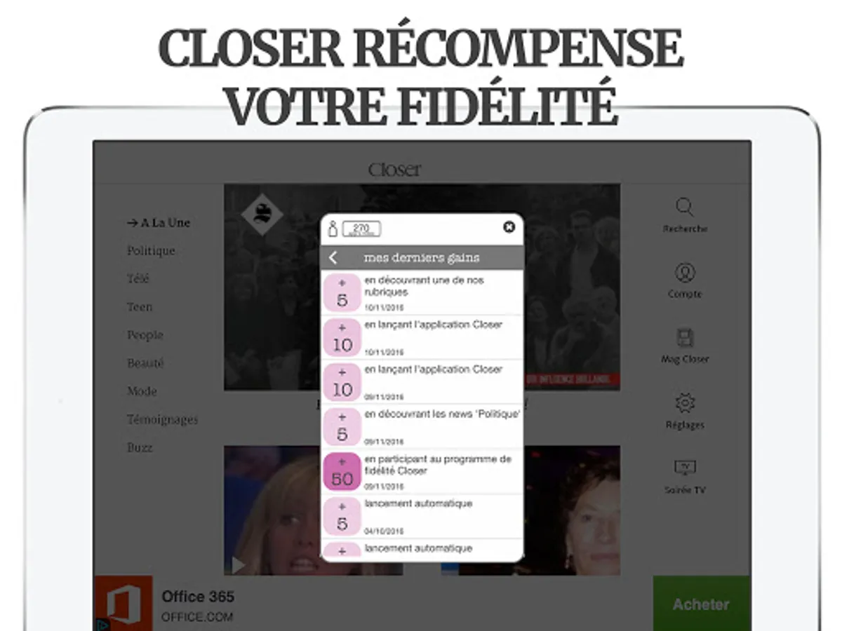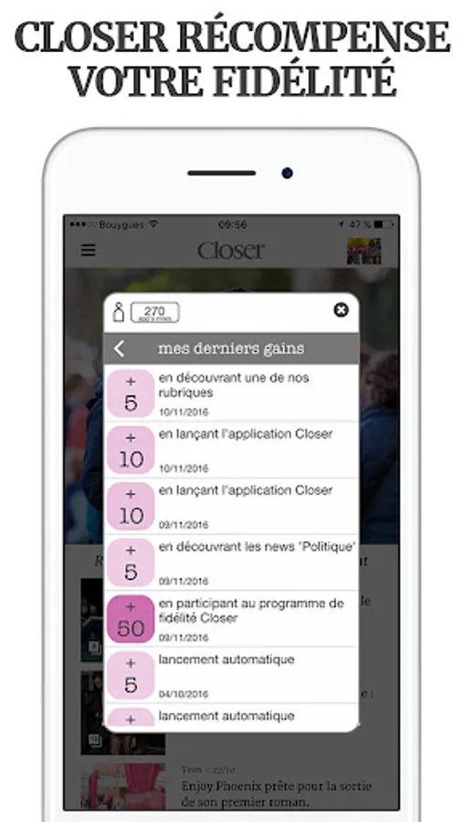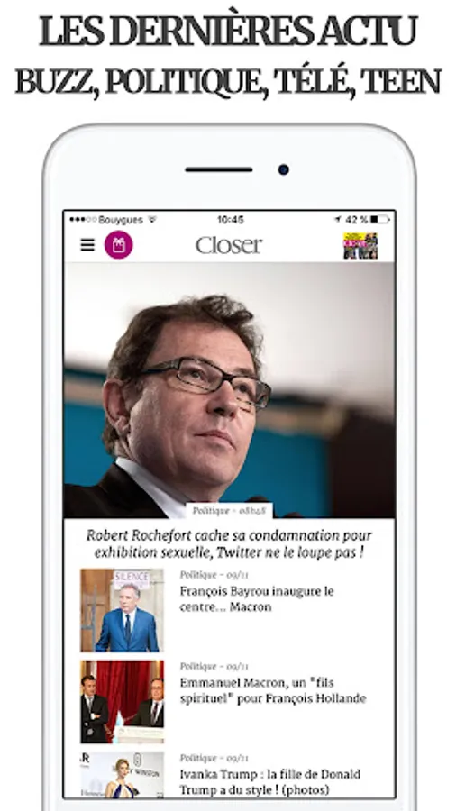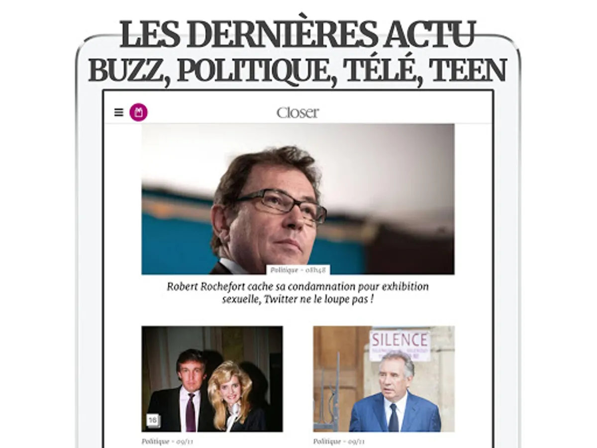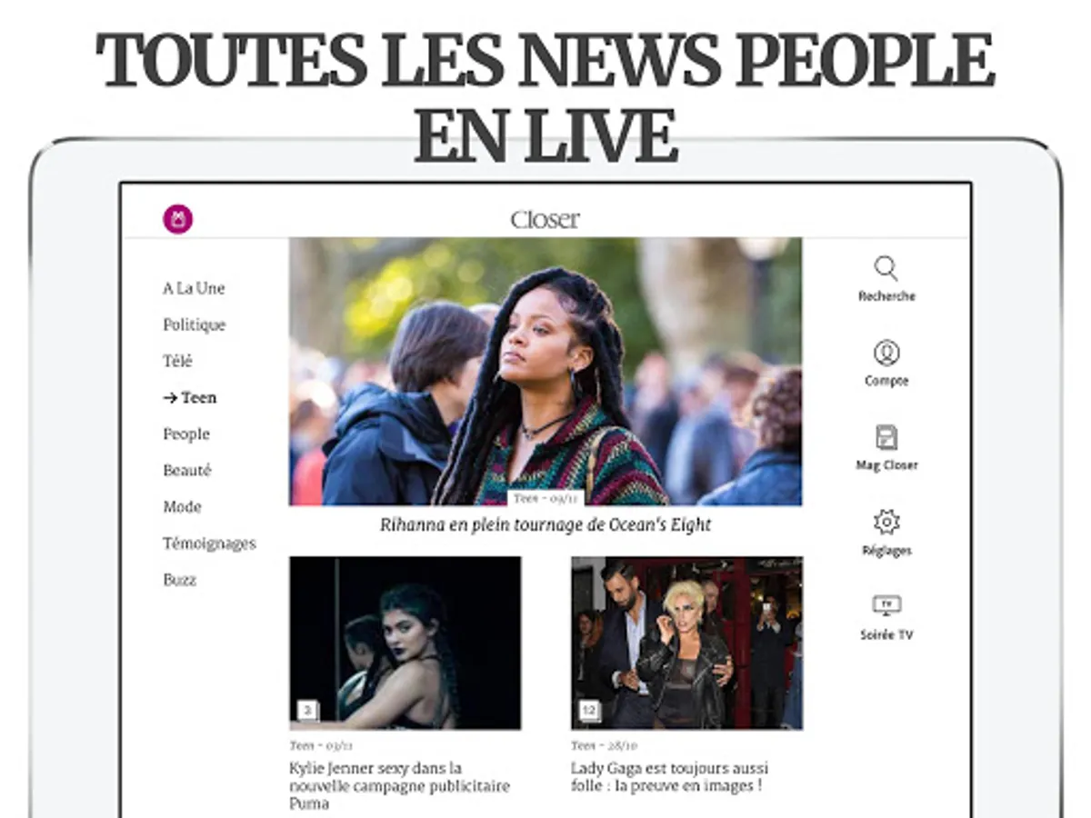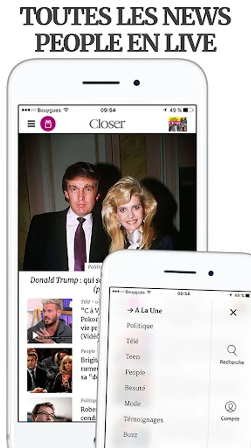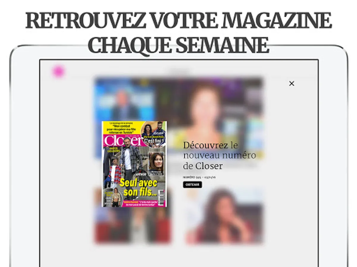 Follow all the ACTU of STARS and PEOPLE in real time, directly on your smartphone or on your tablet, with the CLOSER application 100% FREE!