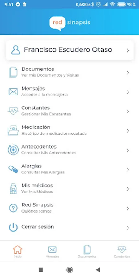 Having a unique place to store all the health data (medical reports, radiographs, tests ...) has become a necessity for all those who do not settle for going to the doctor every certain period of time with the results of the latest tests. Many people would like to have all the information about their past and present health in one place, and this is REDSINAPSIS. Our app offers the following possibilities: