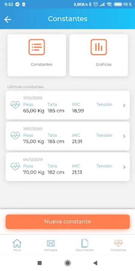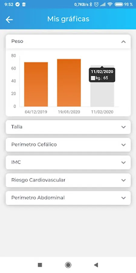 1.- Health data monitoring: REDSINAPSIS allows you to store and monitor data of interest such as weight, height, BMI, colsterol, cardiovascular risk, blood pressure, ets. These data can be entered manually, or automatically by configuring the devices using bluethoot (scales, blood pressure monitors, etc.).