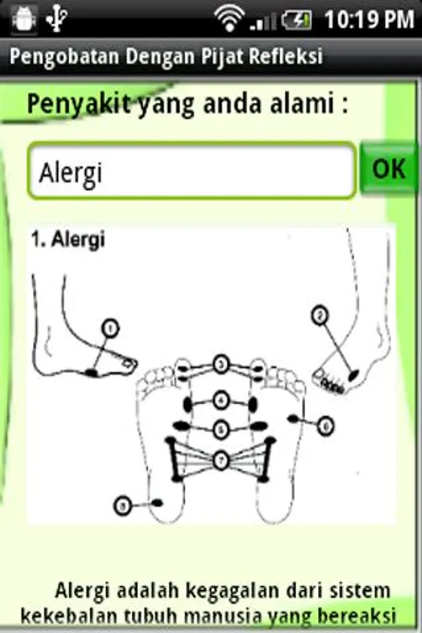 Aplikasi pijat refleksi ini berisi informasi penyembuhan dengan cara pijat refleksi, yaitu menekan pada titik-titik urat saraf yang digambarkan pada aplikasi ini.