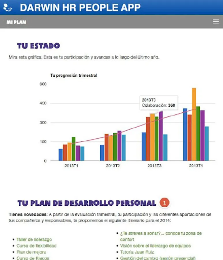 DARWIN generates high levels of engagement, solves the motivational problem, saves time and gets comply HR policies, creating an intelligent panel of people who discover the potential, the level of skills, training needs, barriers and oportrunidades. .. you dare to do?