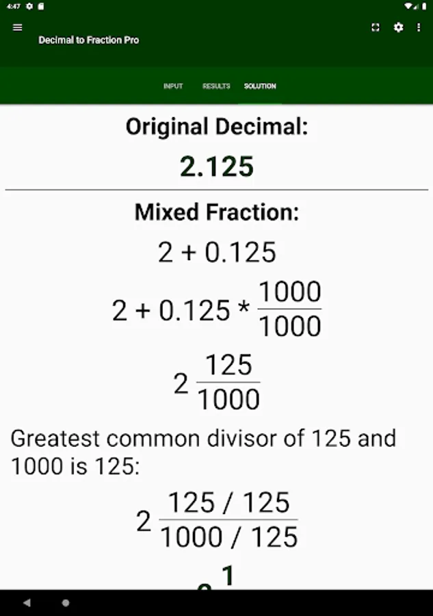Note: There is a fully featured, ad supported, free version of this app, located here: Decimal to Fraction Converter Calculator Free.