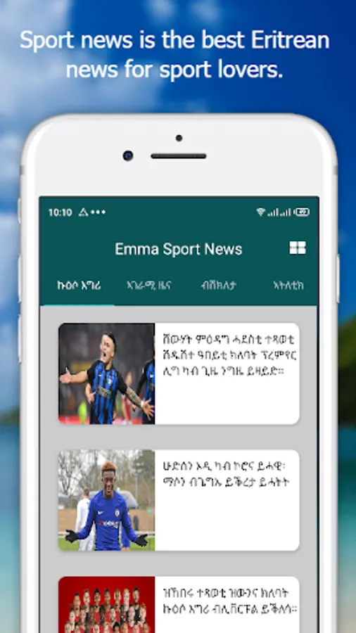 Emma sport news is the best Eritrean news for sport lovers. You can use it full features to read the latest news and hot topics about Football, Cycling, Athletics and many more. You can also use it offline after you have loaded it online.