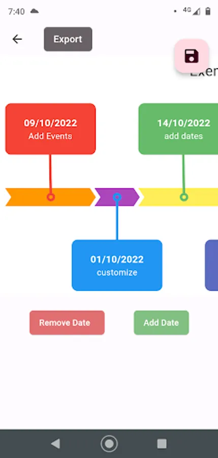 This app is a tool to assist in creating timelines. It has a ready-made timeline template for you to just enter your information, there are also some customization possibilities, such as: changing background color, font size, font color and others.