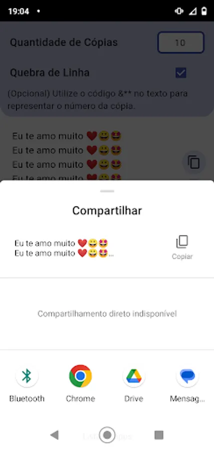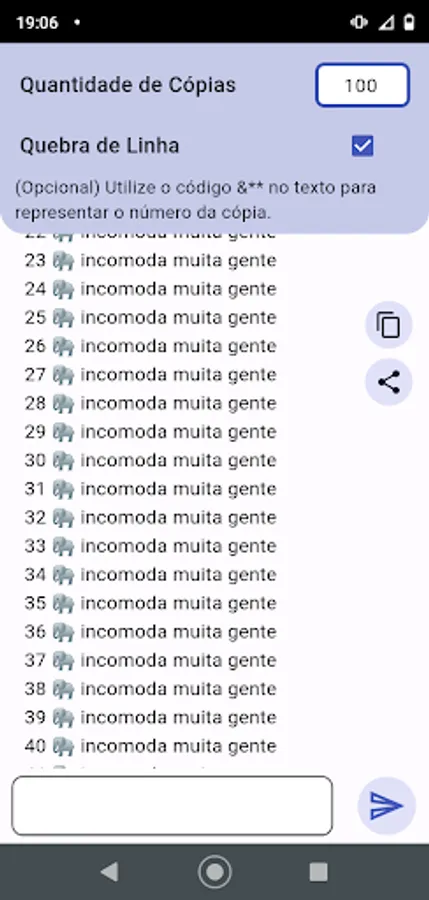 This app is designed to simplify and speed up the process of repeatedly copying text. With this intuitive tool, you can copy any text you want multiple times, customizing the amount of copies and, if necessary, applying line breaks for easy organization.
