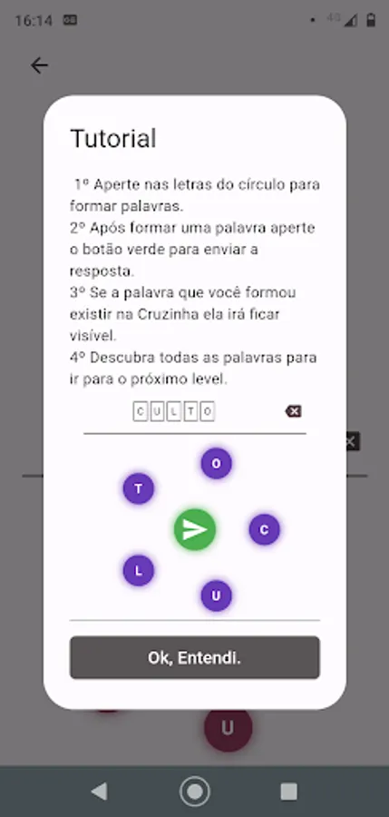 3º If the word you formed exists in Cruzinha, it will be visible.
