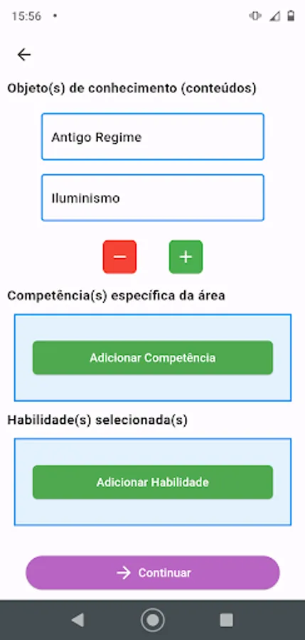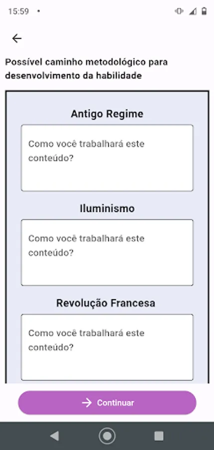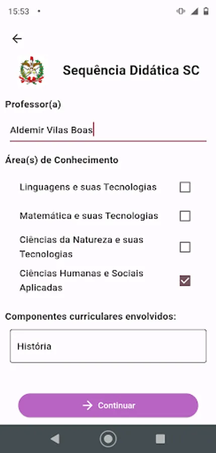 Application for state teachers in Santa Catarina to create the didactic sequence in a faster and simpler way. The app has a set of saved data that facilitate the preparation of the didactic sequence, such as: data from the BNCC, Catarinense Territorial Curriculum and other information.
