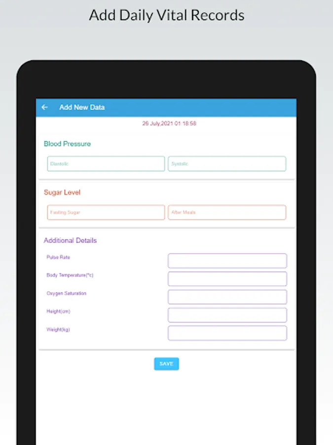 Vital logger is a personal logger to record daily vitals of a person including blood pressure levels, sugar levels, Body Temperature, Heart pulse rate, Oxygen Saturation, Body weight, height etc.