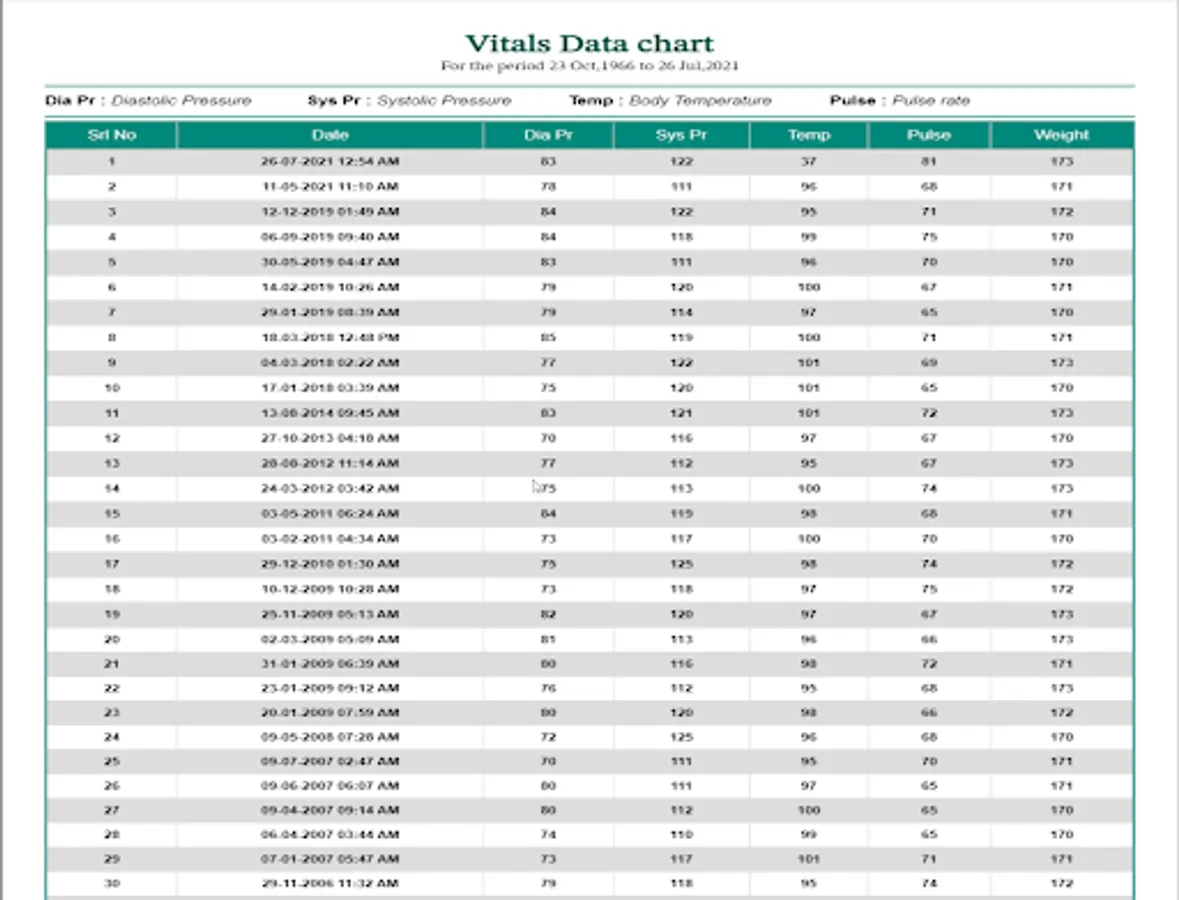 Option to see the recorded data in a graphical format is also provided so that one can easily identify daily variation in vitals.