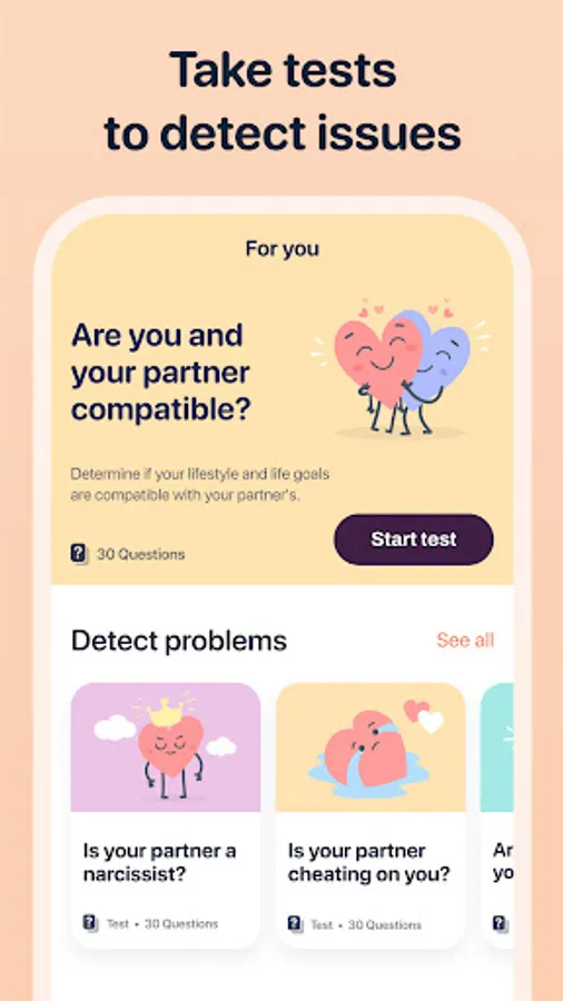 Discover couples' quizzes, play relationship games, take personal tests, and discuss questions for couples about intimacy, communication, conflicts, love, and so much more. This isn’t just a fast-track relationship fix. Instead, it’s the best-kept secret to strengthen your relationship. Whether you’re long distance, living together, temporarily apart, or in couples’ therapy, UpLuv has got you covered at every step of your relationship.