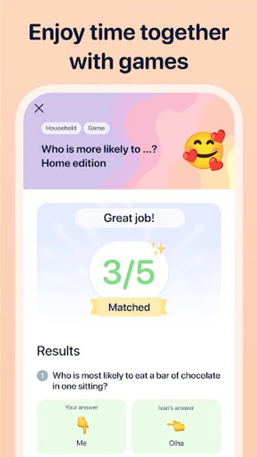 The ideal solution for couples in long-distance relationships seeking new ways to keep that spark alive and build intimacy across the miles. Stay connected and engaged no matter where you are with couples’ quizzes, relationship games, and couples’ questions.
