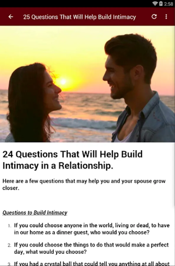 - 24 Questions That Will Help Build Intimacy in a Relationship.