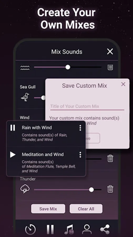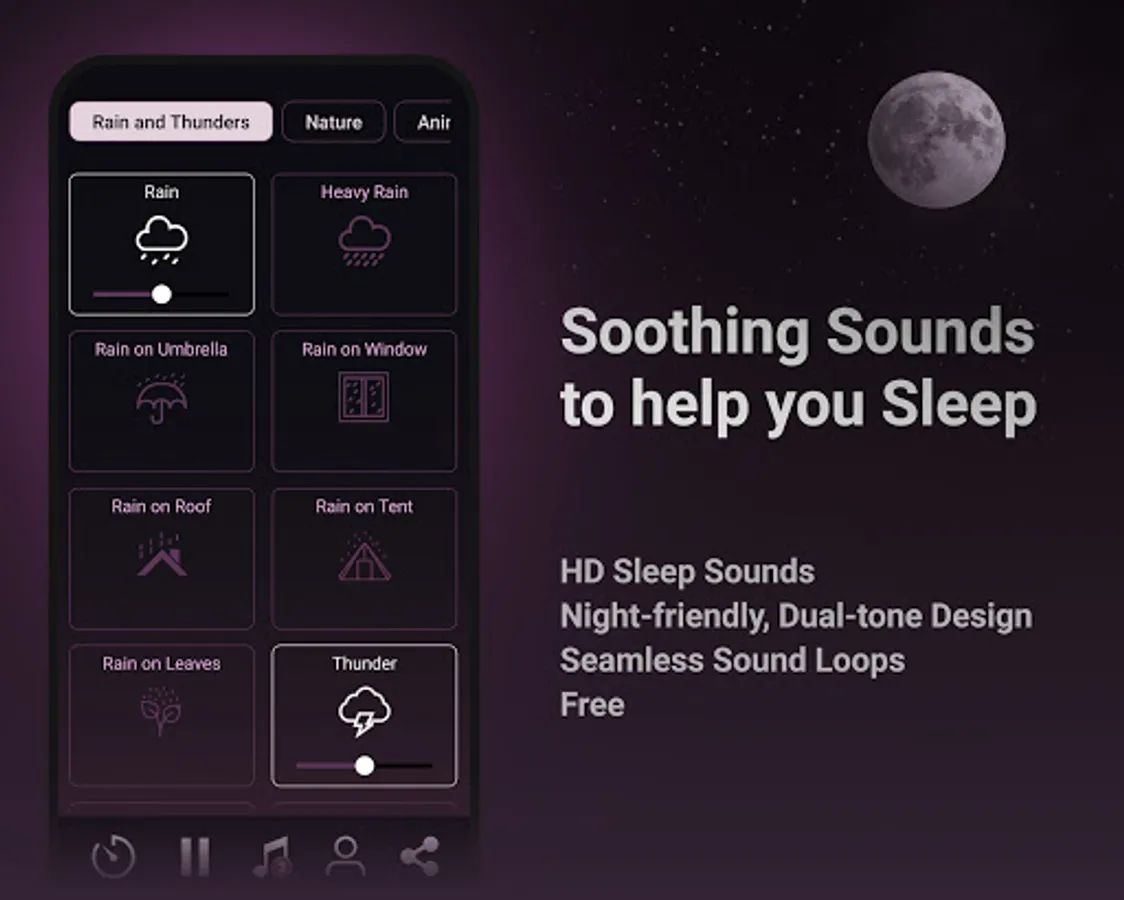 - Mix and Customize your own sleep sounds from a large variety of carefully selected sounds.