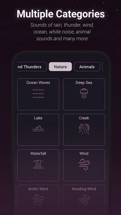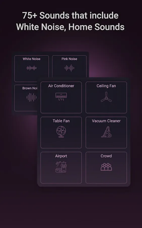Relax and sleep with our selection of 70+ sleep sounds across categories. These sounds have been proven to help you relieve stress, sleep with ease and provide relief from Tinnitus.