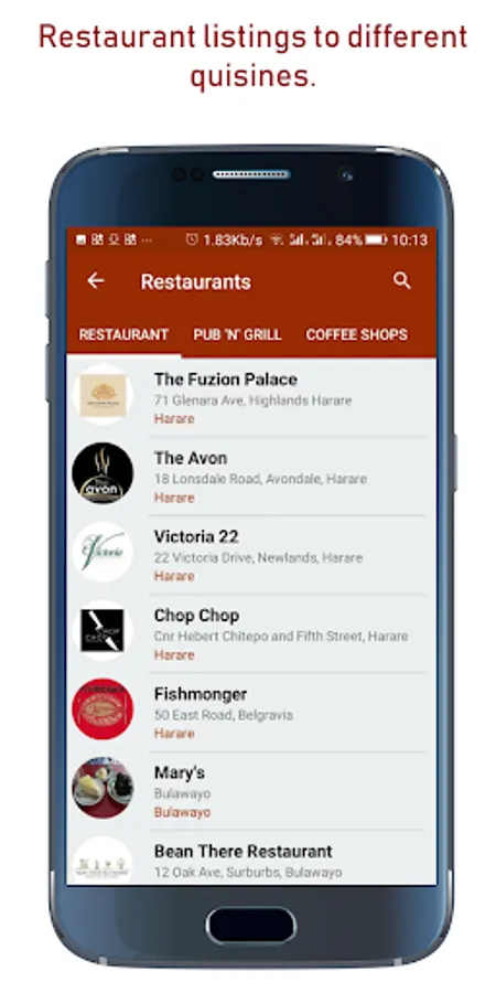 The app guides you through the cities within the borders of Zimbabwe and enjoy attractions like resorts, Victoria falls (one of the seven wonders of the world), Great Zimbabwe ruins furthermore it keeps you updated on the current and upcoming events eg, music shows,sports, film and premiere and theater . Moreover full contact details of Zimbabwe's approved tourism operators or service providers such as Hotels and lodges, Resorts, Transport operators, restaurants, pub and grill and coffee shops.