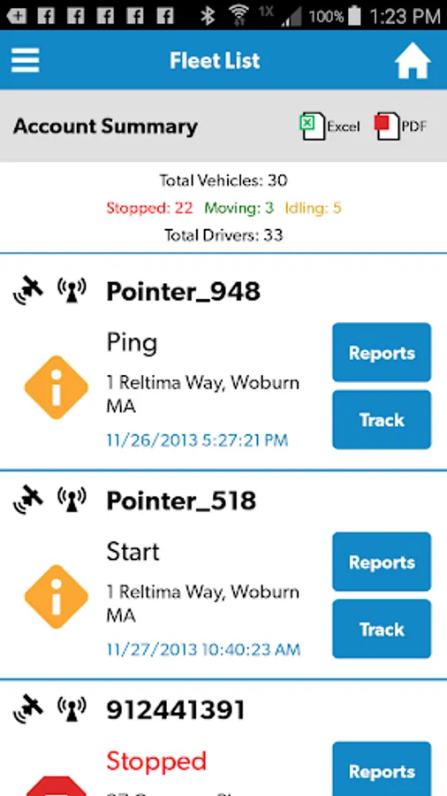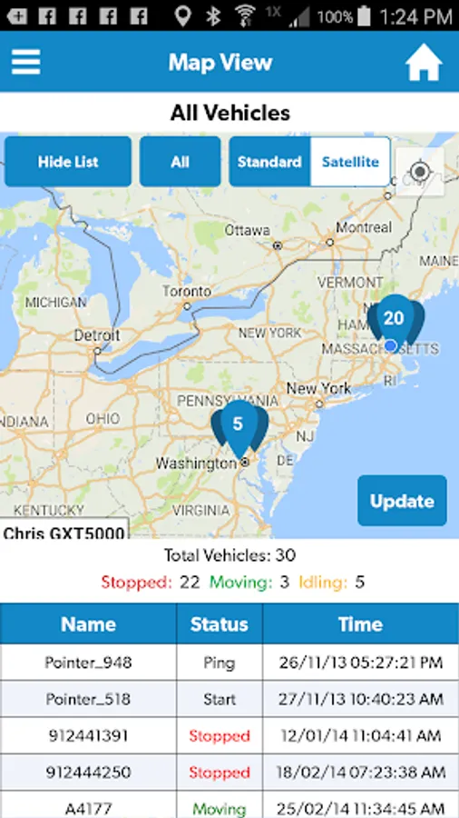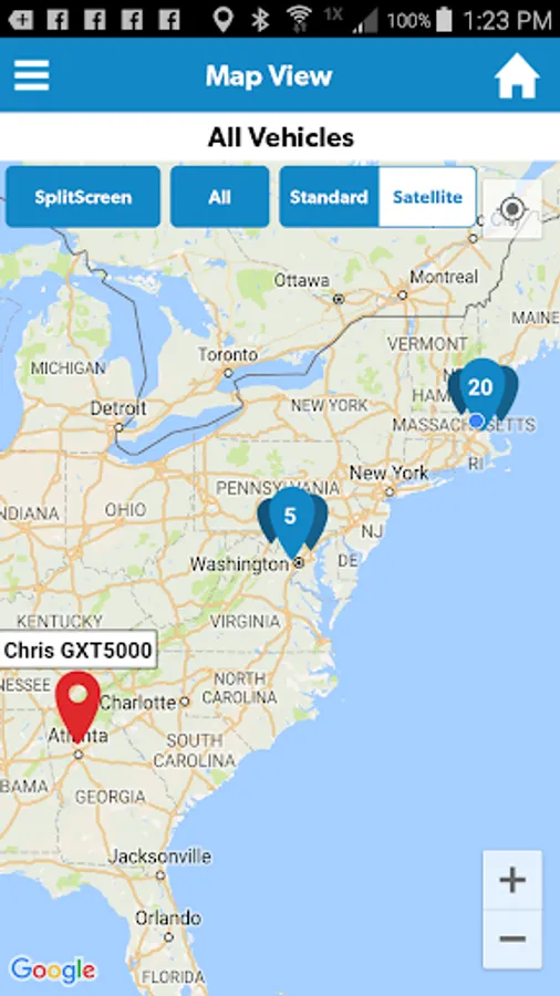 1) Using Google Maps, the SkyBitz mapping module gives you the ability to see vehicle locations and current