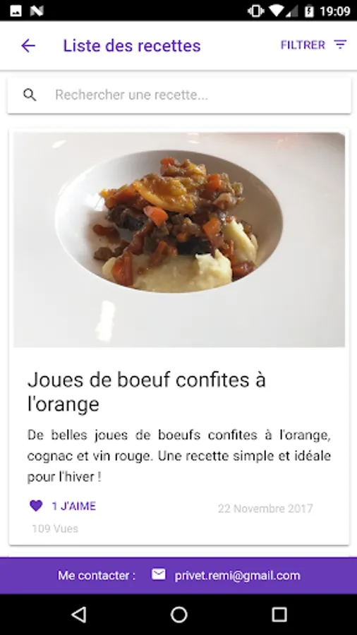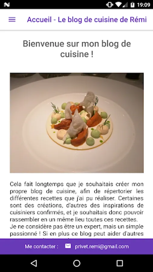 In this cooking blog application, you will find Rémi's recipes, detailed step by step in pictures, but also culinary discoveries (culinary trips, reviews of restaurants, etc.)