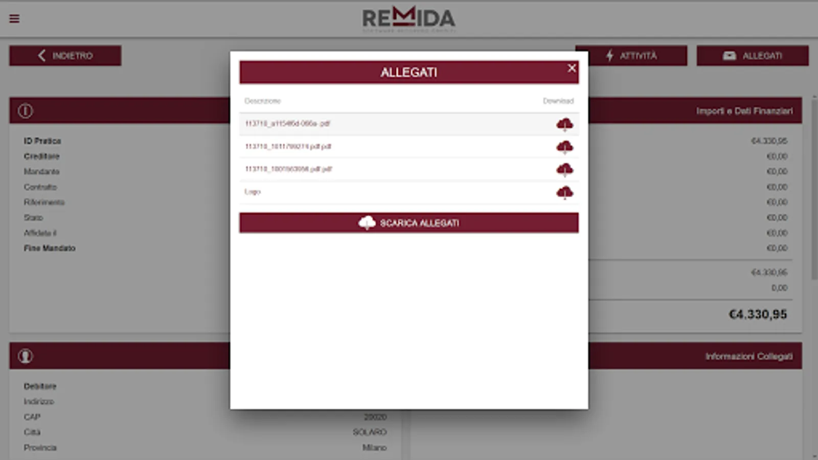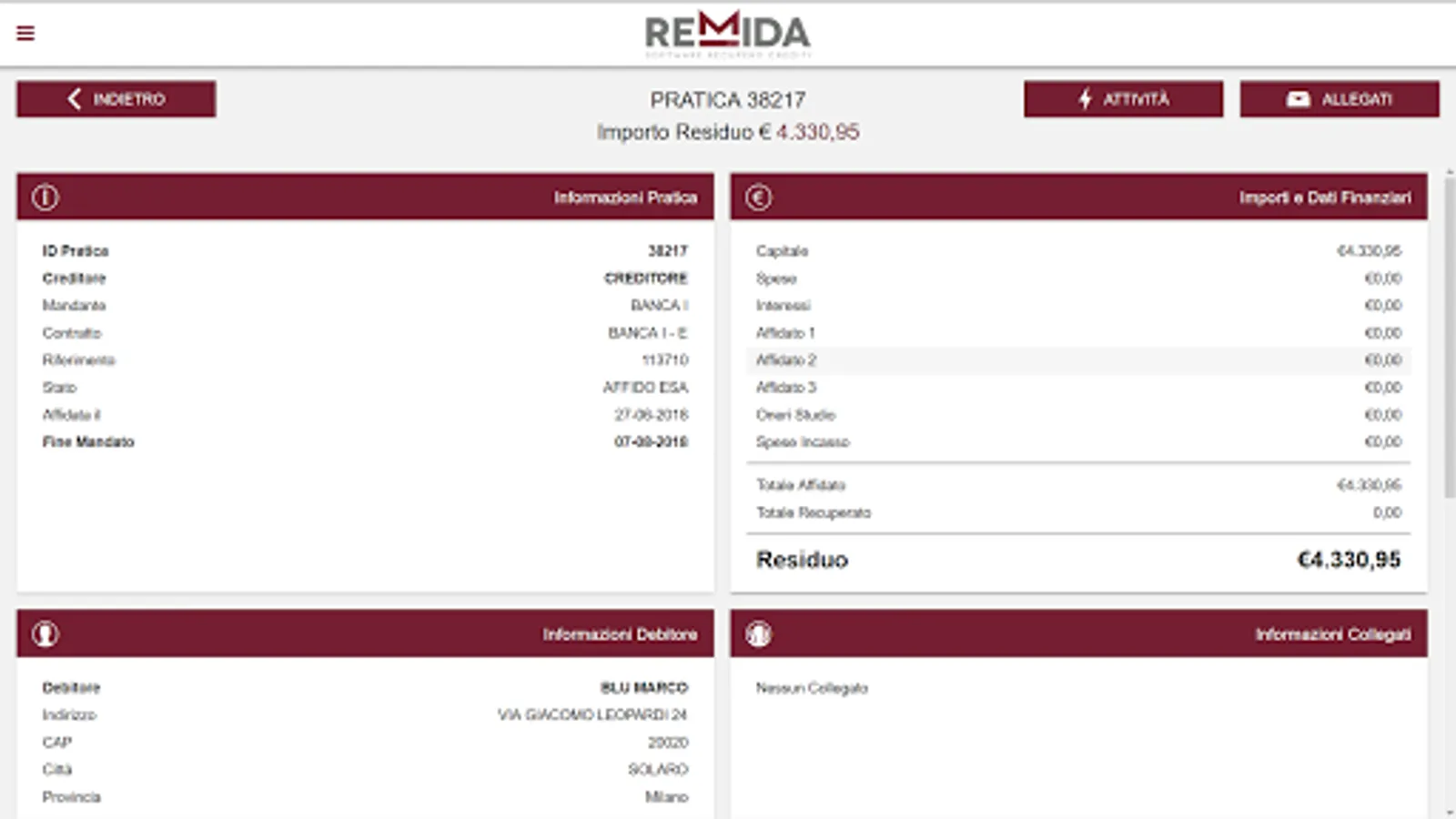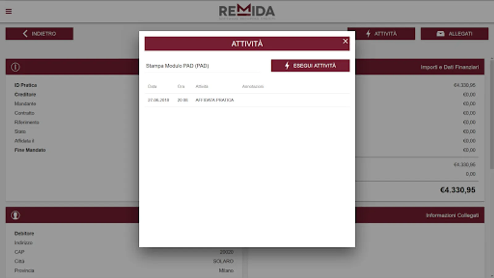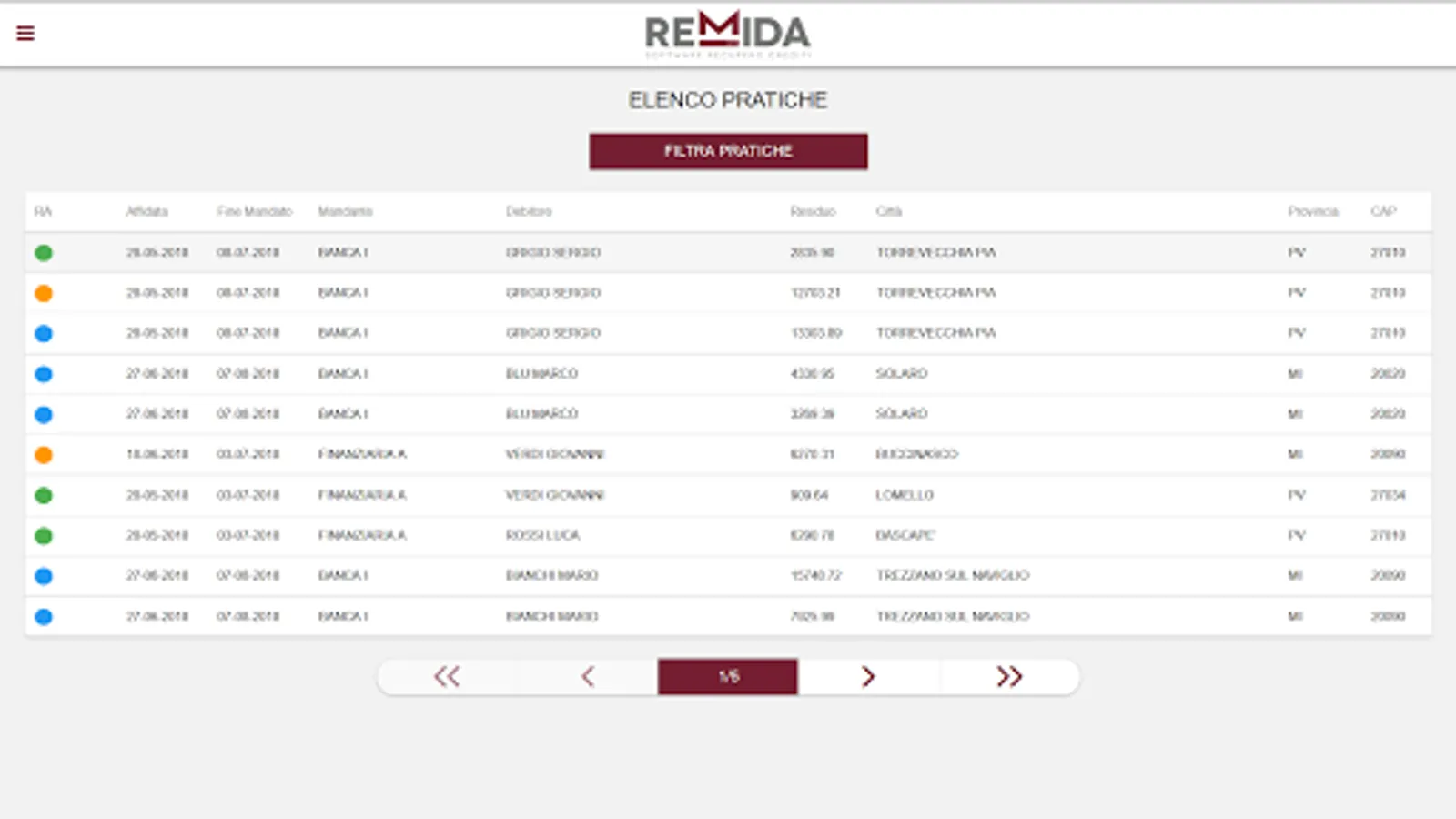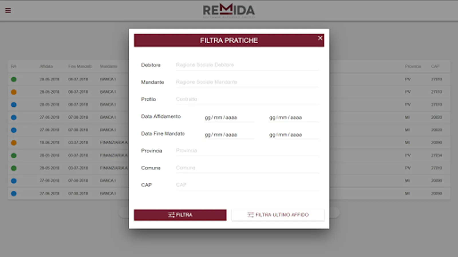 Application that allows, to the debt enrolled in ReMida, management practices, they have been assigned, through consultation of the main information and archived documents, with the ability to perform tasks on individual practices.