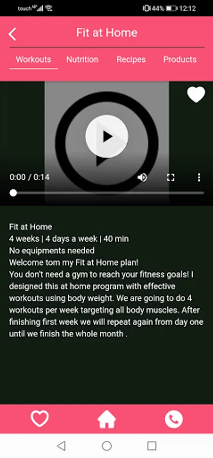 The app has personalized workout plan , nutrition plan , healthy recipes & you can shop healthy products.