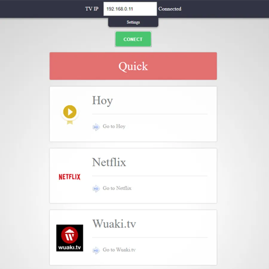 If you have an LG television this application is for you. Quickly access the applications of your television (Youtube, Disney Channel, Movistar, Netflix, Wuakim Orange, ....) LG and the inputs (HDMI, USB, PC, etc)