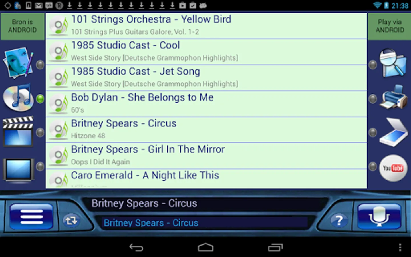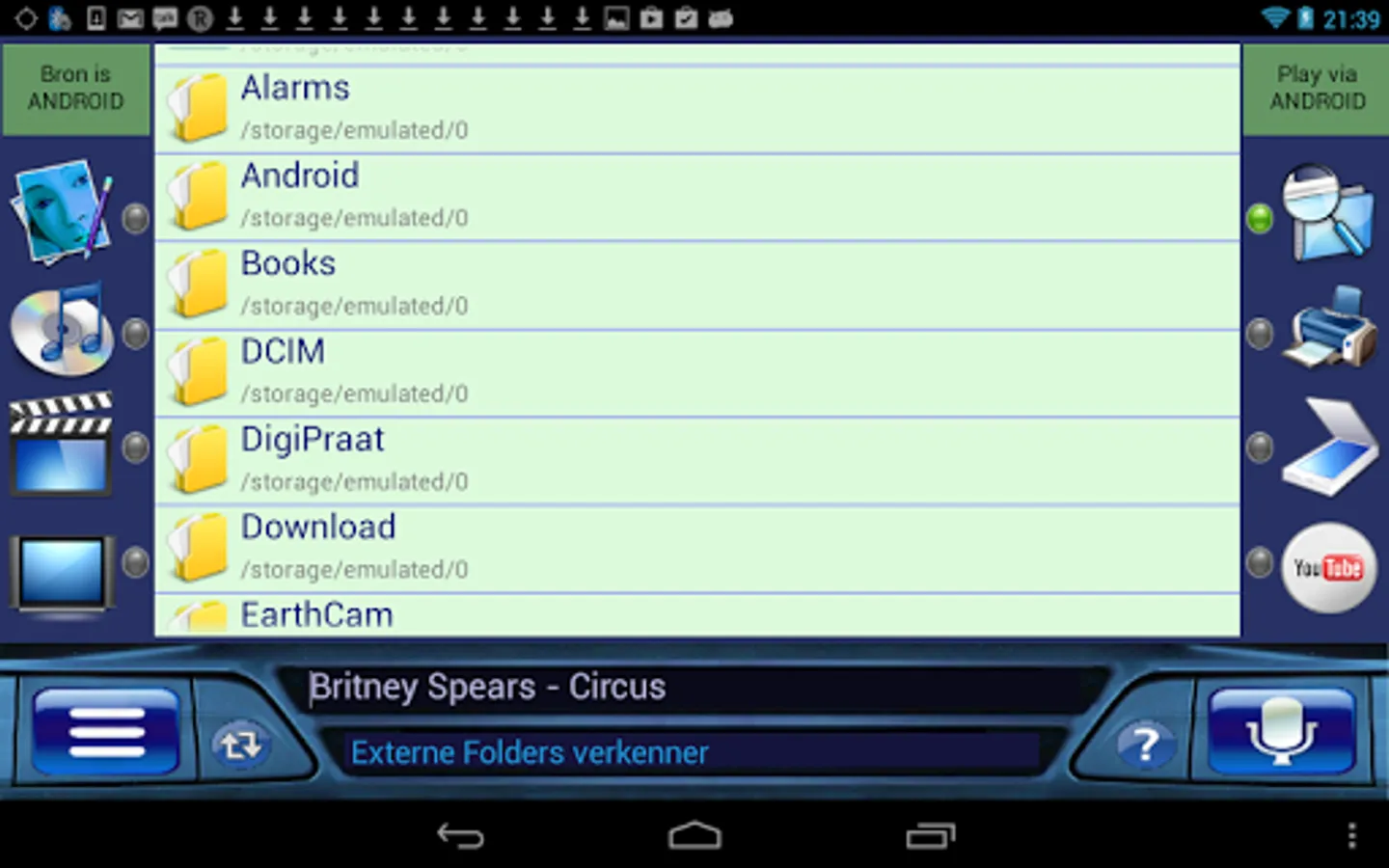 You can select images, music and video files on from your Android or from your Windows computer to play/show, regardless of whether the files are on your Android or on your PC ! Similarly, you can also view several TV and radio stations on your Android or PC as well as search and play view Youtube videos.
