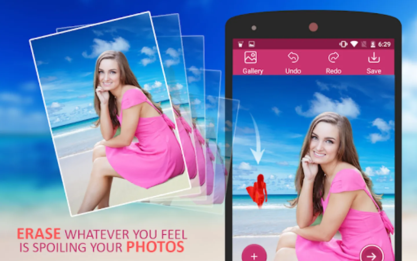 Picture eraser, body, لمسة, remove unwanted object from photo is a Clever app where you remove unwanted content from Photo just using the brush and lesso tool. You simply brush over the picture or object that you want to remove so that they’re selected in red and magically disappear. delete text from photo, delete logo, delete stamp.