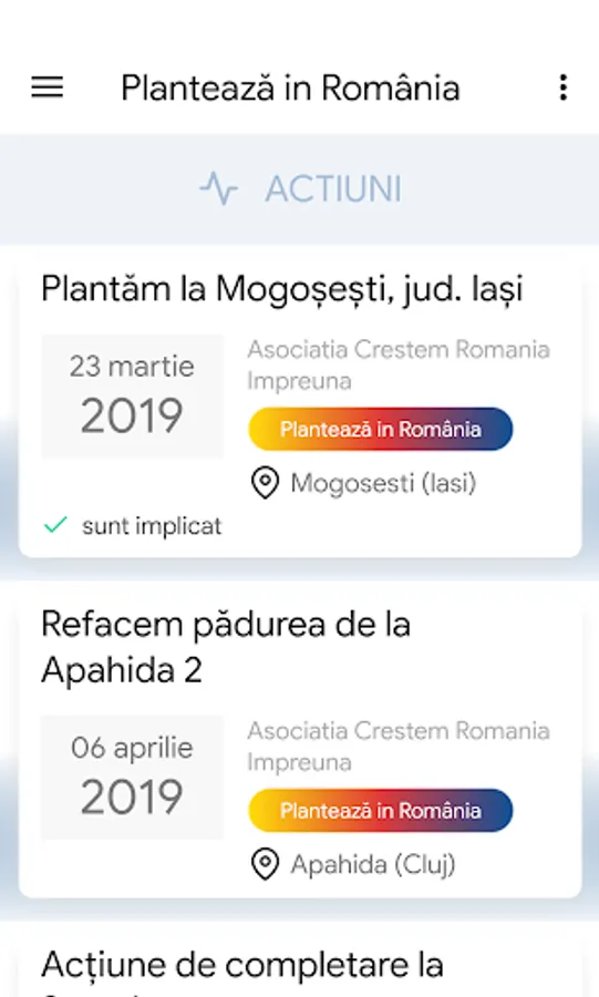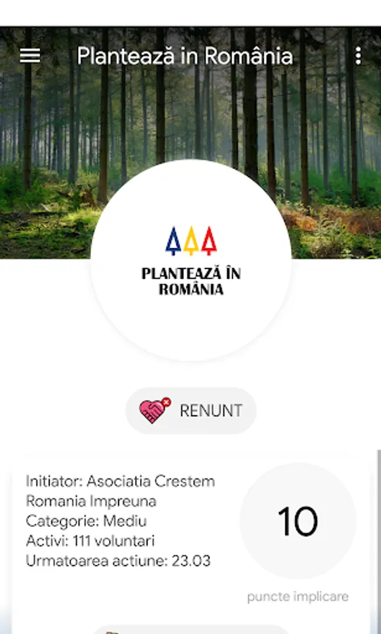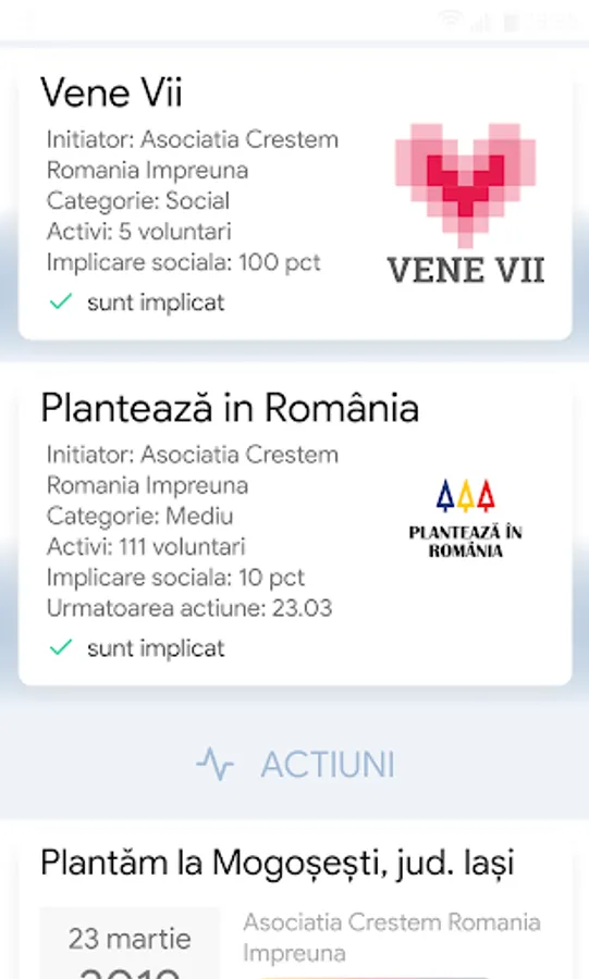 Renaşte România is the application that brings together the projects of NGOs / NGOs with volunteers. Now you have no excuse not to get involved in the life of your community! Within the application, you find the projects of all associations wanting to be with us, giving them a framework where they can make their projects known but also solve the problem of volunteers. In addition, an association has the opportunity to receive donations through this application.