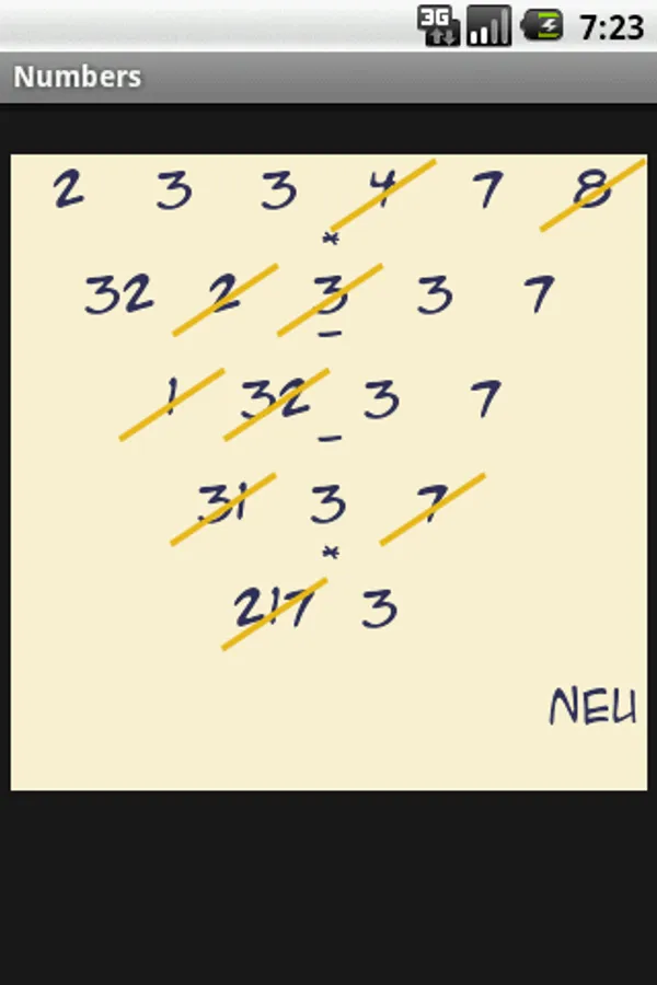 Game to combine numbers with plus, minus, times and divide to get a target number. It is like the numbers part of the French show "Des chiffres et des lettres", where these problems were presented in a TV show.