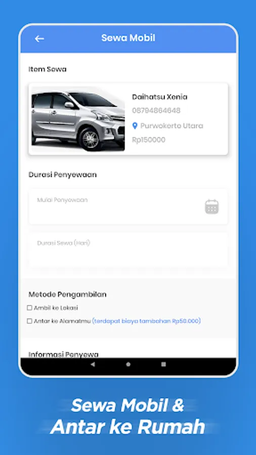 Rentalin is an application that can help those of you who are looking for a car to rent for your various activity needs. Besides being able to rent, you can also offer your car for rent by adding your car as a tenant.