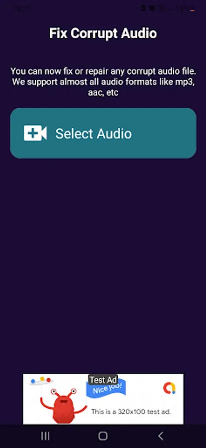 2. Click on the select button to select the damaged audio mp3 file