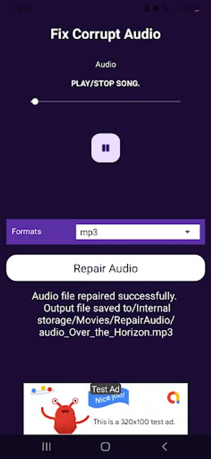 3. Click on the repair button, the new mp3 file would be saved on your device.